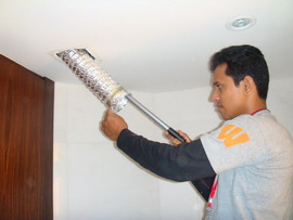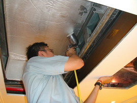 處理前的新風(fēng)氣閘門                                銀康對(duì)新風(fēng)管進(jìn)行處理