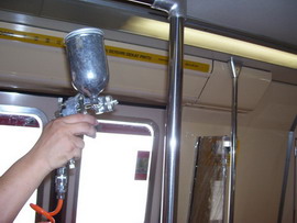 用蒸汽清潔車廂表面 噴涂銀康納米銀和光觸媒