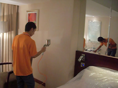 一、工程概況項(xiàng)目名稱:廣州總統(tǒng)大酒店620客房空氣凈化工程地址:廣州市天河區(qū)天河路586號(hào)工程內(nèi)容:客房的表層處理二、施工現(xiàn)場(chǎng) 廣州總統(tǒng)大酒店620客房 施工前檢測(cè) 施工前保護(hù) 銀康光觸媒噴涂墻壁