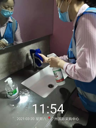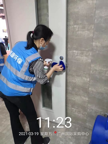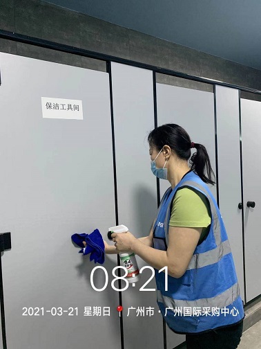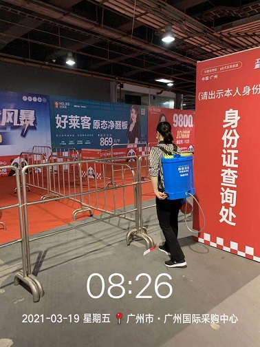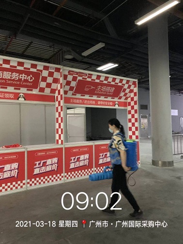 2021年3月16-21日,銀康公司承辦廣州國際采購中心展館-華夏家博會保潔及防疫消毒服務(wù),以下是進行保潔及防疫消毒服務(wù)的相關(guān)圖片: 場外圖片: 保潔及消毒服務(wù)圖片: